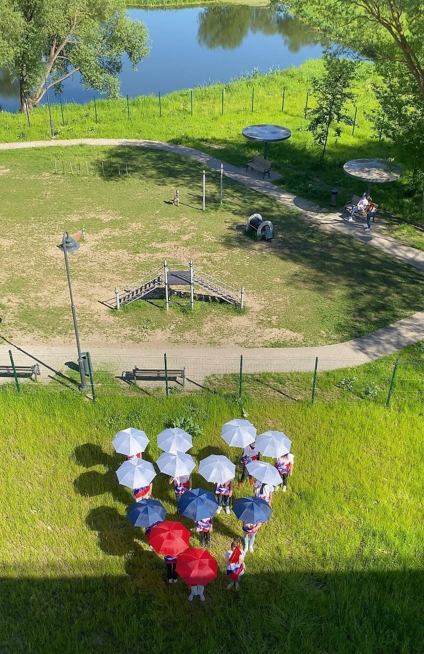 Единороссы эффектно поздравили жителей города с Днем России!В честь этого знаменательного события активисты и сторонники партии, волонтеры и молодогвардейцы Единой России на площадке у пешеходного моста провели яркий флешмоб. Участники акции выстроились в форму сердца и открыли зонтики трех цветов так, что получился российский флаг.
