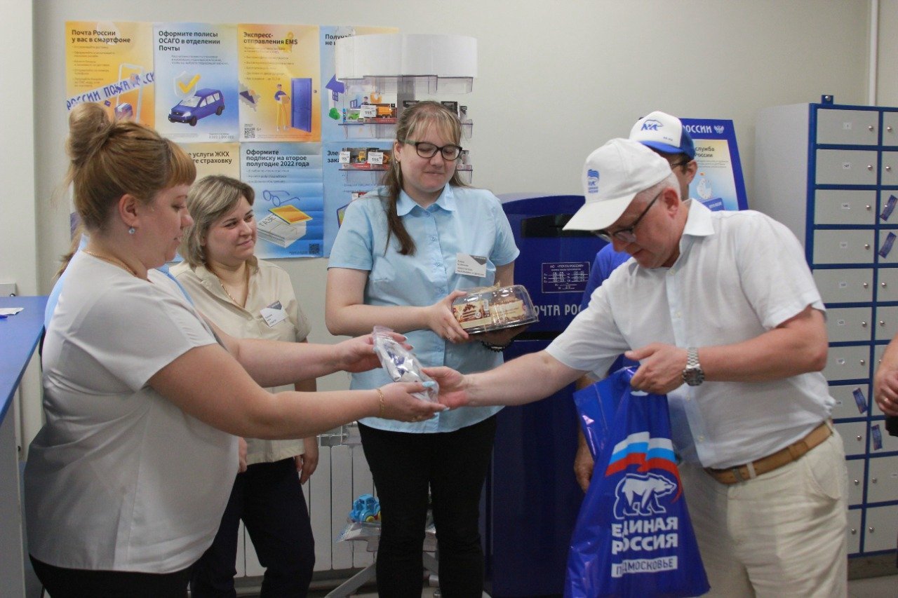 В канун праздника руководитель фракции "Единая Россия" в Совете депутатов городского округа Воскресенск Сергей Слепов и член фракции Ростислав Гончаров совместно со сторонниками и активистами партии поздравили и подарили памятные подарки сотрудникам одного из почтовых отделений городского округа Воскресенск. Данное отделение переехало на новое, более удобное для жителей, место и совсем недавно открылось после ремонта.