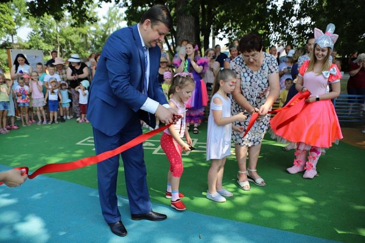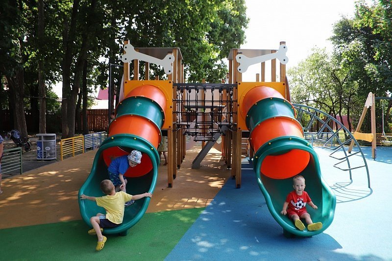 «Площадка современная, интересная и большая – ее площадь достигает 450 кв. м. Детям тут есть где разгуляться. Для комфорта взрослых разместили удобные лавочки», - прокомментировал Артур Викторович.