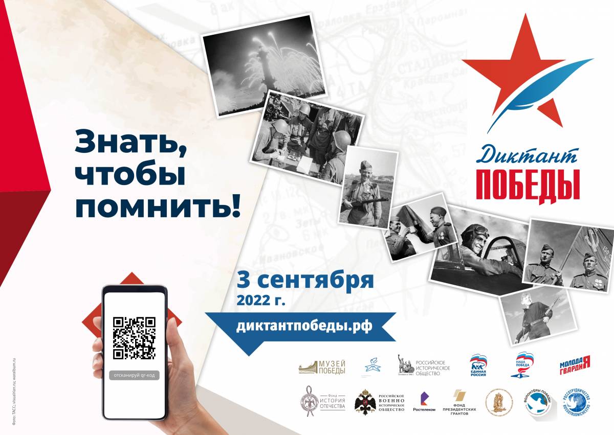 Международная акция «Единой России» «Диктант Победы» состоится 3 сентября. Традиционно акция пройдет при поддержке «Волонтёров Победы», Росгвардии, Минобороны, МВД, МЧС.
