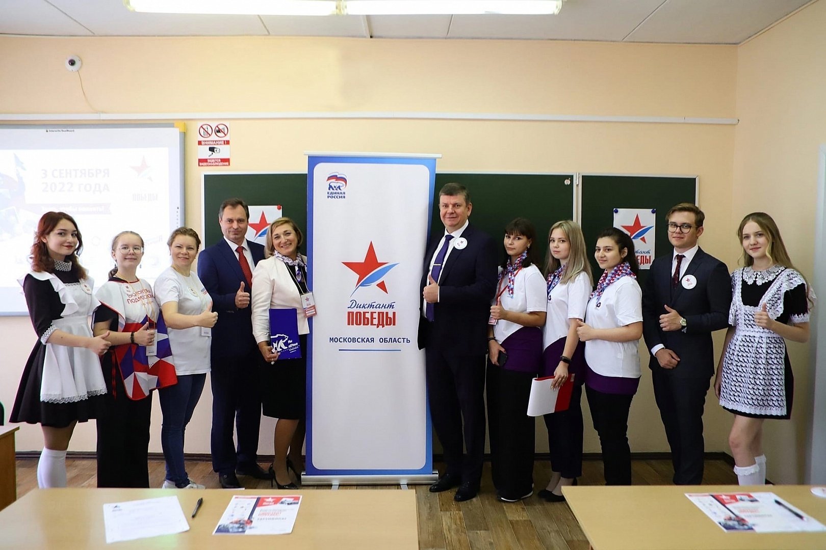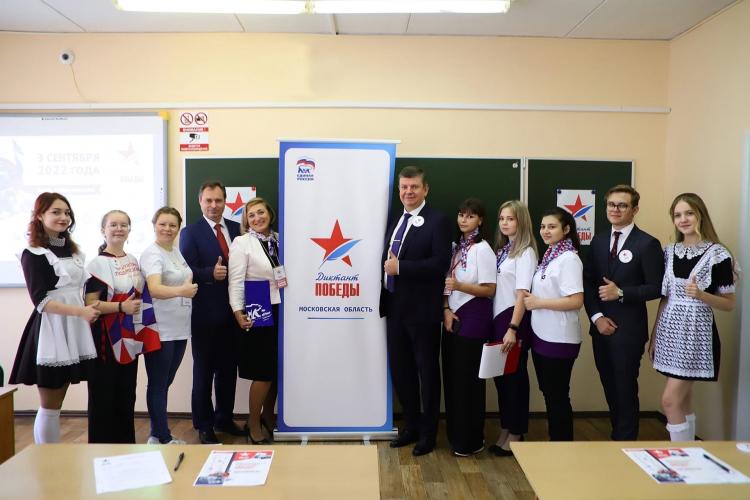Депутат написал Диктант Победы на площадке в Гимназии имени Подольских курсантов. Кадетские классы, активное участие учащихся в движении «Юнармия», бережное отношение к родной истории и сохранение памяти о Великой Отечественной войне и подвиге Подольских курсантов в школьном музее стали решающими факторами в выборе площадки акции.