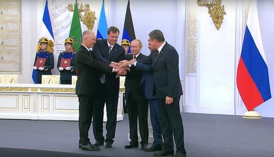 Президент РФ Владимир Путин 30 сентября подписал договоры о включении в состав Российской Федерации Донецкой Народной Республики, Луганской Народной Республики, Херсонской и Запорожской областей. Документы были подписаны при участии глав этих территорий — Дениса Пушилина, Леонида Пасечника, Владимира Сальдо и Евгения Балицкого.Церемония состоялась в Георгиевском зале Большого Кремлевского дворца.