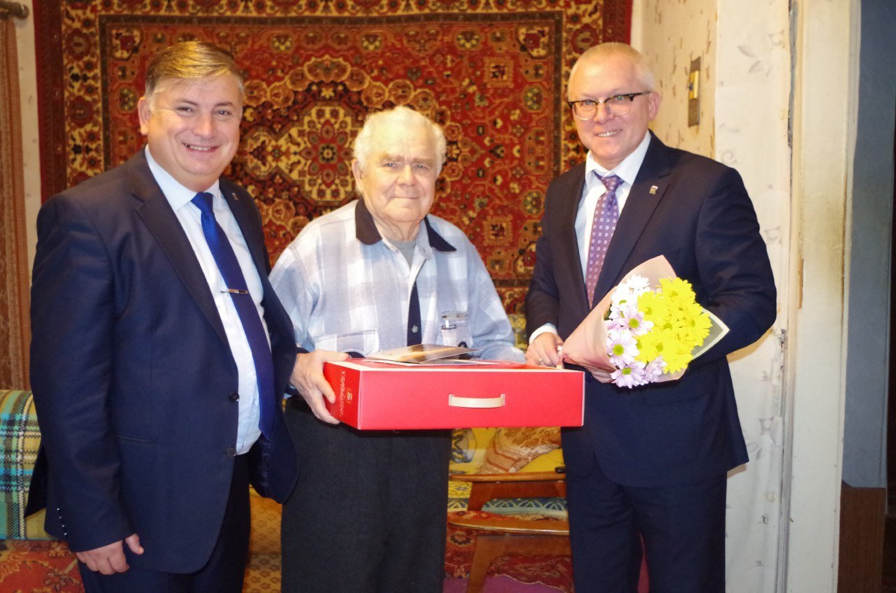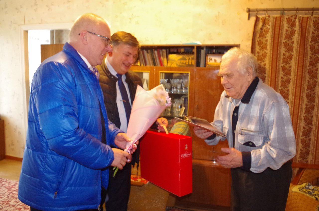 Председатель Совета депутатов городского округа Воскресенск, член политсовета местного отделения партии "Единая Россия" Владимир Кузнецов совместно с руководителем фракции «Единая Россия» в Совете депутатов городского округа Воскресенск Сергеем Слеповым поздравил Соловова Валентина Васильевича с юбилеем.Валентин Васильевич приехал в Воскресенск в 1955 году после демобилизации. Отучился в нашем колледже в мкр. Цемгигант на ремесленное дело, далее трудился газовщиком до 75 лет. Подключал в домах газовое оборудование, устанавливал газовые плиты и колонки. Вчера ему исполнилось 90 лет.