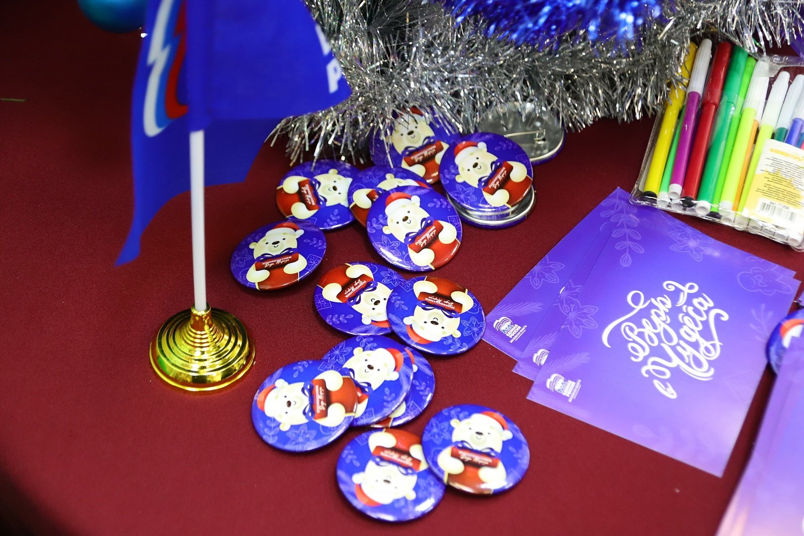 Традиционно после изготовления своих сувениров участники получили сертификат «Помощника Деда Мороза», памятный значок и сладкие подарки.