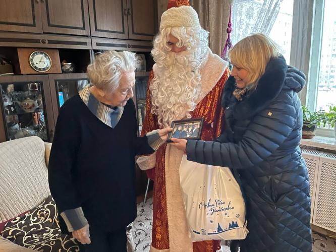 В Химках депутаты также поздравили с новогодними праздниками ветеранов Великой Отечественной войны. В рамках акции «С Новым годом, ветеран!» председатель Совета депутатов Сергей Малиновский вручил подарки семье Елены Елкиной.