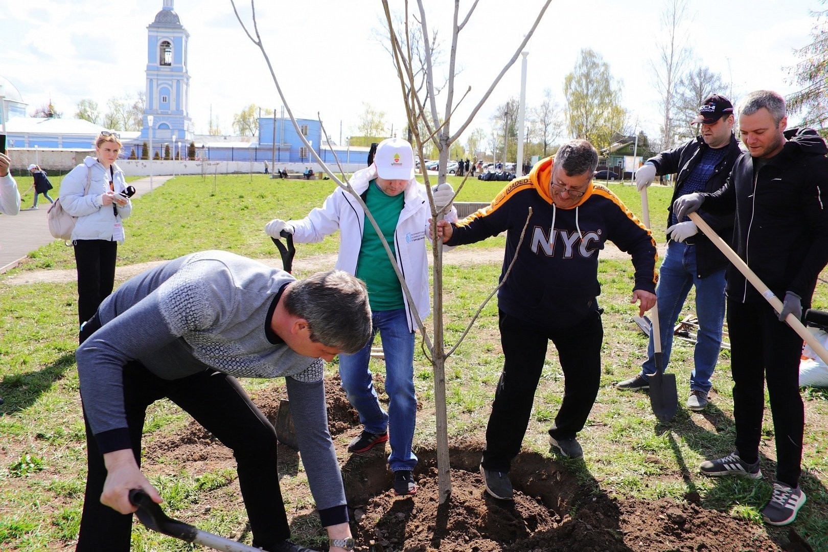 Воскресенцы наводили порядок вдоль дорог, в пойменной части парка усадьбы Кривякино, а также в микрорайоне Лопатинский, Москворецкий, Цемгигант, в городе Белоозерский и других точках муниципалитета. Провели пробный пуск фонтанов. Уделили внимание и озеленению – например, на набережной реки Москвы в микрорайоне Новлянский, под колокольный звон высадили саженцы серого ореха.