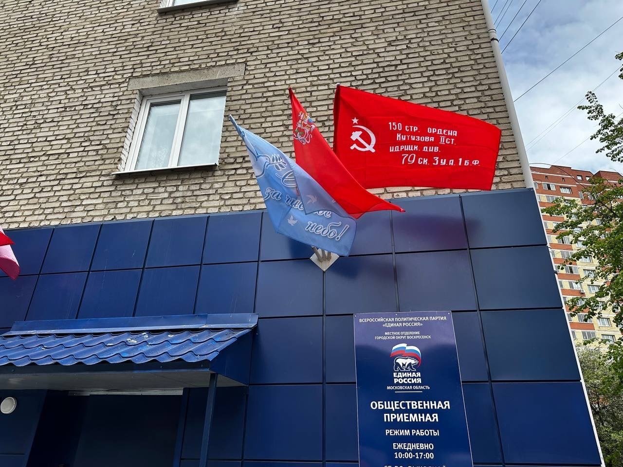 Воскресенские партийцы разместили копию Знамени Победы на здании отделения партии