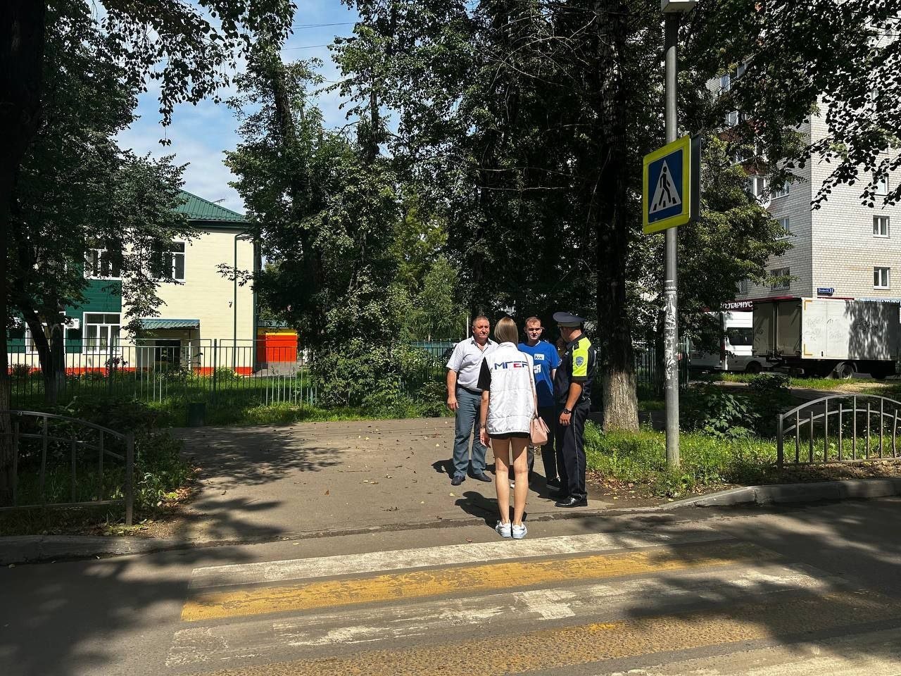 Далее осмотрели пешеходный переход у МОУ СОШ № 25, МУ ДК «Химик» и Воскресенской Областной больницы - возле данных объектов нарушений не обнаружено, все соответствует основным требованиям.