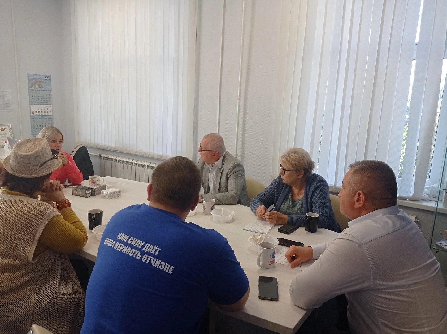 В прошлый раз в ходе встречи удалось решить несколько вопросов и дать необходимые консультации участникам встречи.В этот раз на встрече присутствовали не только жены и матери мобилизованных, но и сами бойцы, которые временно находятся в отпуске. В тёплой, дружеской атмосфере обсудили обстановку, узнали как обстоят дела дома. Кто-то пришёл с вопросами касающимися части ЖКХ, кто-то с вопросами по отправке гуманитарной помощи. Все обращения взяли на контроль, будем помогать.