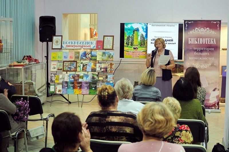 19 октября в отделе краеведения Центральной библиотеки состоялась презентация книги. Воскресенских литераторов с этим событием поздравила начальник управления культуры администрации округа Елена Баклушина, а также активисты и сторонники партии «Единая Россия» в рамках партпроекта «Культура малой родины».