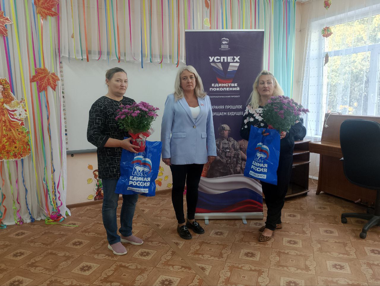 Воскресенские партийцы и сторонники «Единой России» поздравляют воспитателей в рамках партийного проекта «Новая школа».Депутат Совета депутатов Воскресенска Екатерина Павлова посетила МОУ «СОШ имени Героя России лётчика-испытателя Сергея Рыбакова» СП «Малыш», где поздравила коллектив с профессиональным праздником, в числе которых есть мамы участников СВО.
