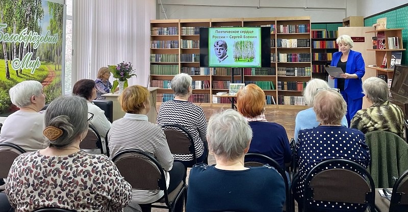 В Белоозерской городской библиотеке в рамках цикла патриотических мероприятий «Единой России» «Успех V единстве поколений» и в рамках литературной акции «Есенина прекрасная пора» прошел литературный час «Поэтическое сердце России – Сергей Есенин», посвященный 130 - летию со дня рождения Сергея ЕсенинаМероприятие сопровождалось показом слайдов и музыкальных клипов на стихи поэта. Посетители библиотеки проникновенно читали вслух полюбившиеся стихи Есенина, которые полны сердечной теплоты и искренности: «Гой ты, Русь, моя родная», «Письмо матери», «Мы теперь уходим понемногу» и другие.
