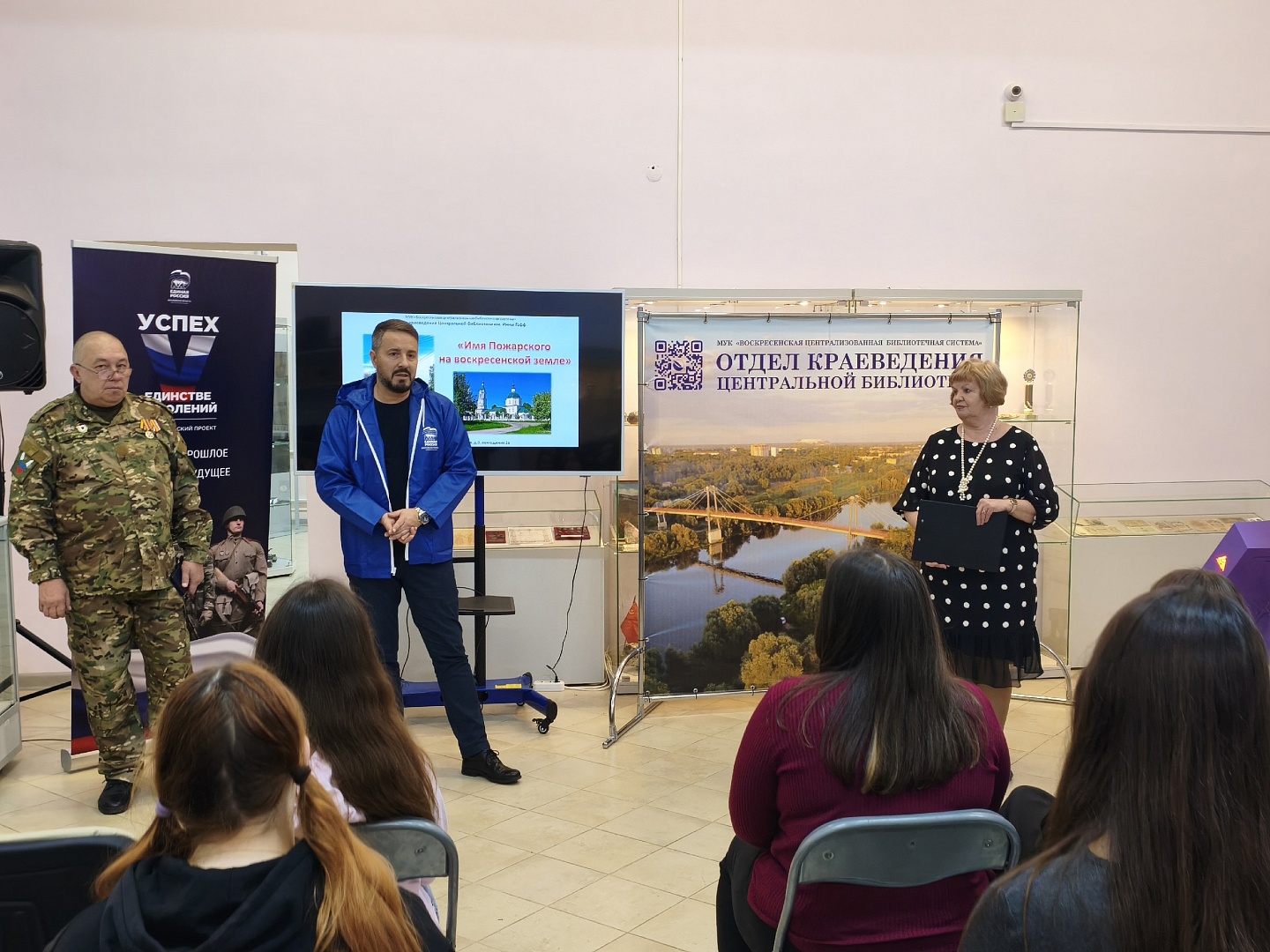 В отделе краеведения Центральной библиотеки им. Инны Гофф прошёл исторический час «Имя Пожарского на воскресенской земле» для студентов Российской академии туризма (РМАТ)