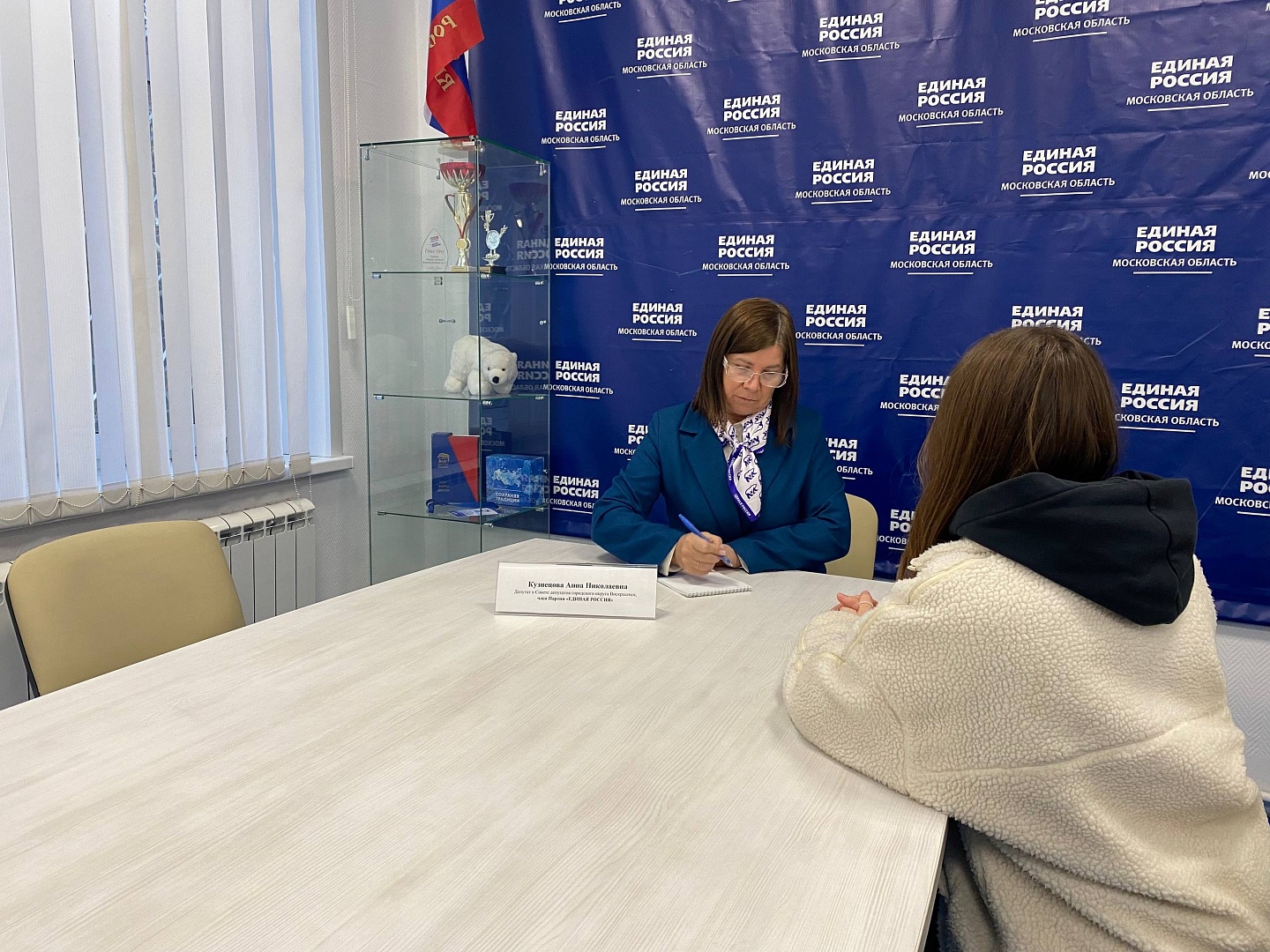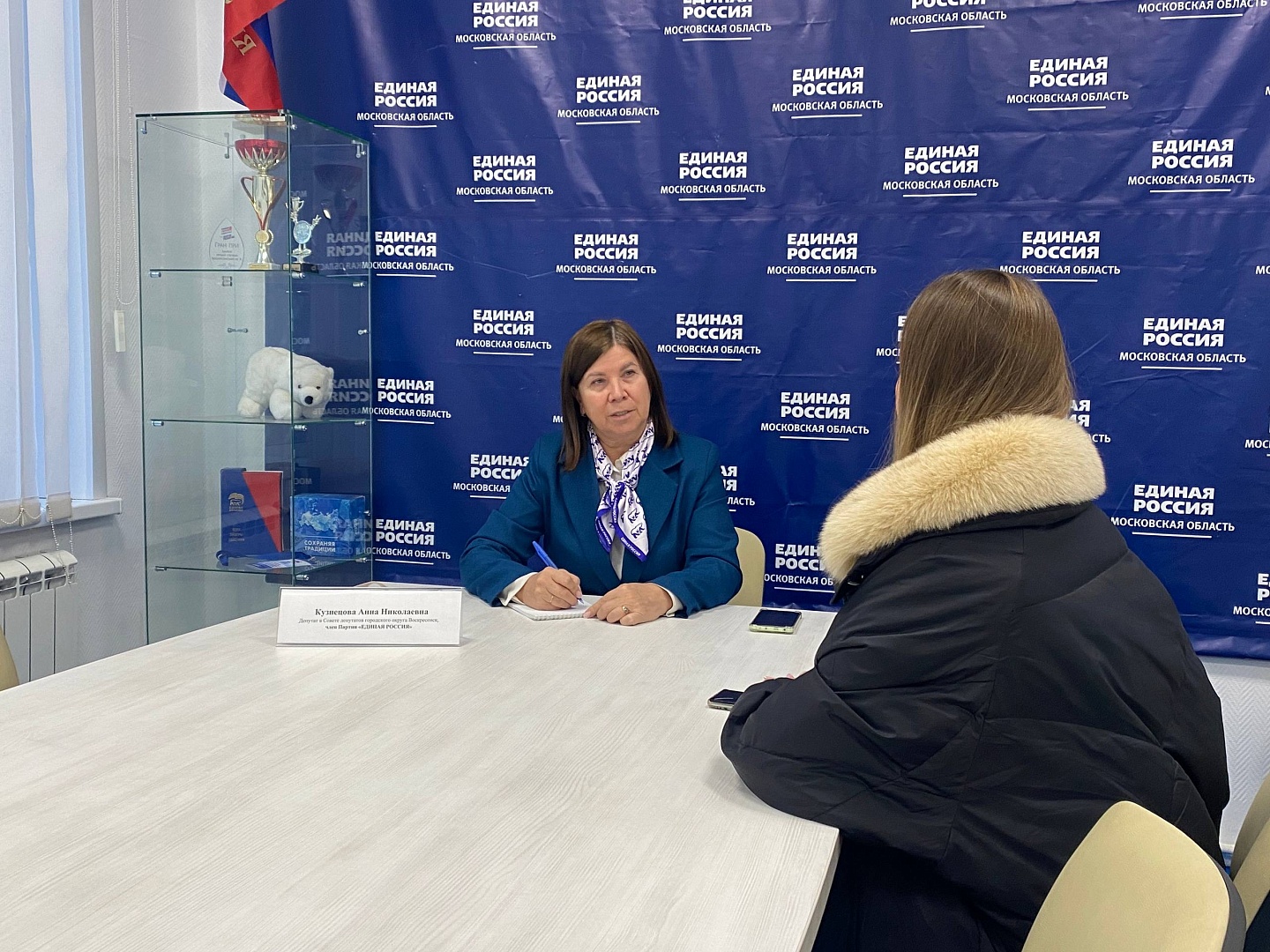 Депутат Совета депутатов городского округа Воскресенск Кузнецова Анна приняла участие в декады приёмов граждан в местной общественной приемной Партии "Единая Россия".К депутату обратились две заявительницы. Первая девушка интересовалась, где можно найти информацию о доступных курсах и программах повышения квалификации для учителей. Анна Кузнецова рассказала о существующих курсах для педагогов и ответила на все вопросы.