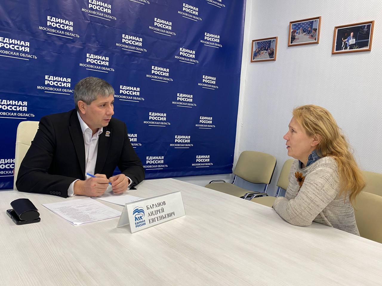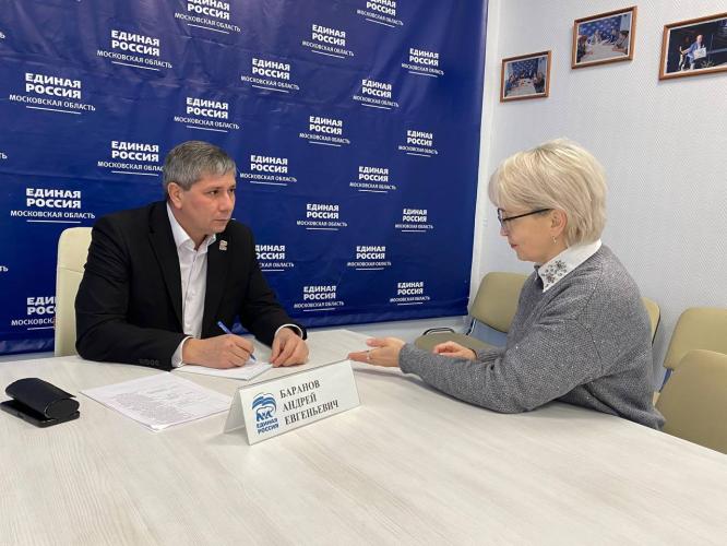 Депутат Совета депутатов городского округа Воскресенск Андрей Баранов принял участие в декаде приёмов граждан в местной общественной приемной Партии "Единая Россия".На приём к депутату обратились две девушки. Первая заявительница задала вопрос о поддержке малого бизнеса. Она интересовалась, какие меры и программы существуют для помощи предпринимателям. Депутат Андрей Баранов подробно ответил на все её вопросы, объяснив, какие программы уже действуют.