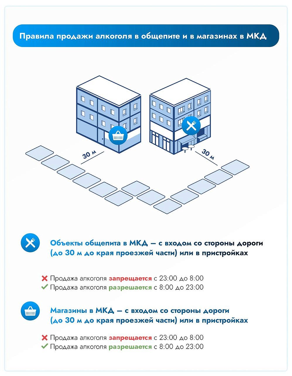 С 1 сентября 2025 года в Подмосковье запрещено продавать алкоголь во дворах жилых домов. Получить лицензию на розничную продажу алкоголя могут только те магазины, у которых вход находится со стороны улицы и расположен не дальше 30 метров к краю дороги.