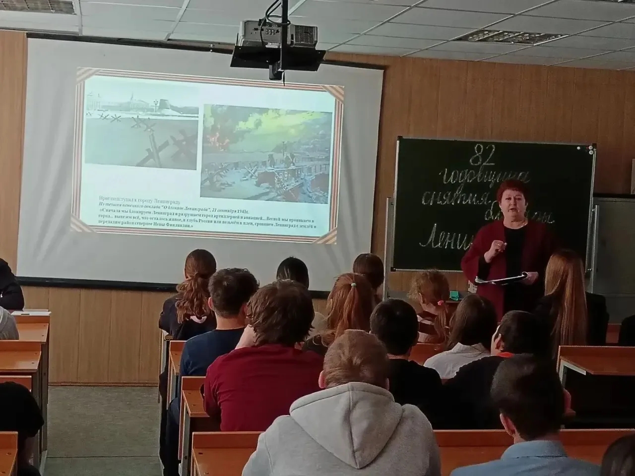 Это не было обычным занятием. Это была встреча-диалог, где живая история обращалась к современности. В гости к ребятам пришли депутат Совета депутатов городского округа Воскресенск Илья Донодин и ветеран СВО, руководитель Ассоциации ветеранов специальной военной операции Олег Стегура. Провела эту важную беседу учитель истории и обществознания Примак Татьяна Анатольевна. Ее вступительное слово о 900 днях стойкости, голода и героизма ленинградцев задало тон всему мероприятию.Илья Донодин говорил о невероятной ценности мира, о долге защищать свою Родину и о том, как важно в наши дни сохранять историческую правду и единство народа перед лицом любых испытаний.