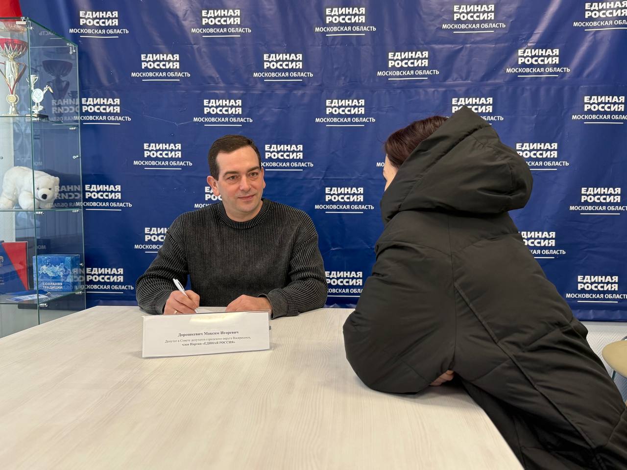 В местной общественной приемной партии «Единая Россия» городского округа Воскресенск провел прием депутат Совета депутатов городского округа Максим Дорошкевич.В ходе приёма граждан поступили два значимых обращения, касающиеся благоустройства городской среды.