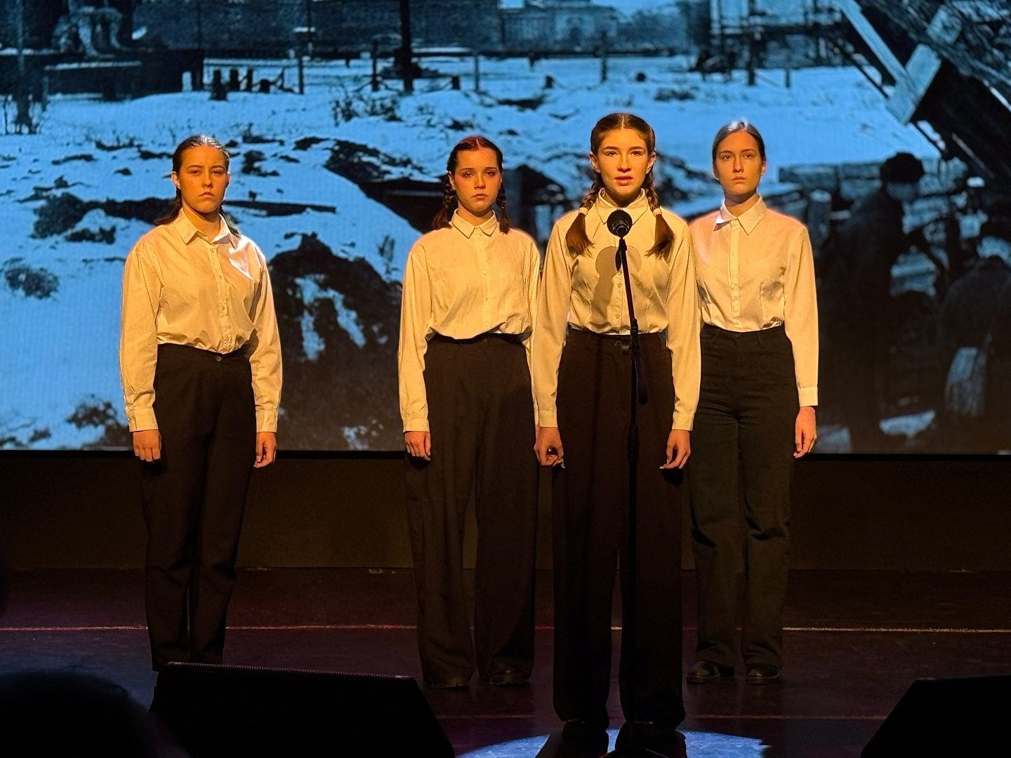 Этим вечером гости собрались в зале Дома культуры «Гармония», чтобы вспомнить героический подвиг нашего народа в годы Великой Отечественной войны. Это была самая страшная война ХХ века, которая принесла много горя нашей Родине, нашим семьям. Но благодаря мужеству, стойкости и отваге советских солдат наша страна победила фашистских захватчиков.Участников ждал невероятный отрывок из спектакля Театральной студии «Лики» (руководитель Татьяна Новикова) «Я видел войну» по книге Светланы Алексиевич, повествующий об ужасах блокадного Ленинграда, страшном голоде и нелёгкой судьбе, свалившейся на плечи невинных детей. Благодарим артистов за эти эмоции