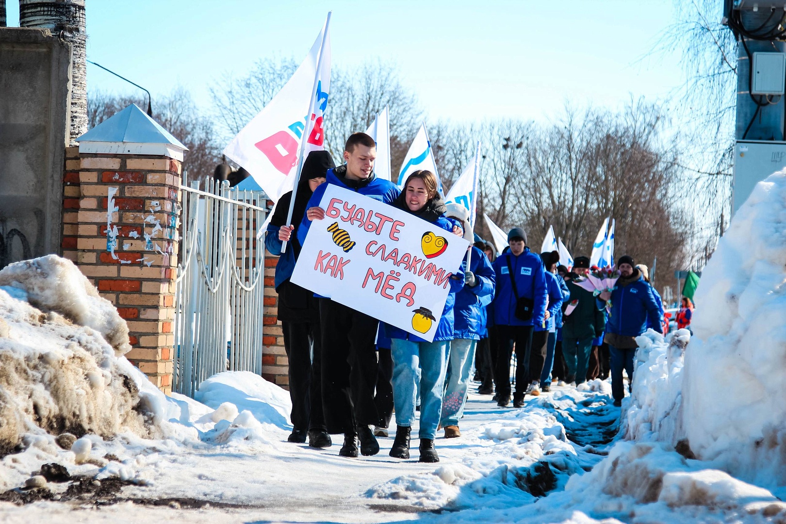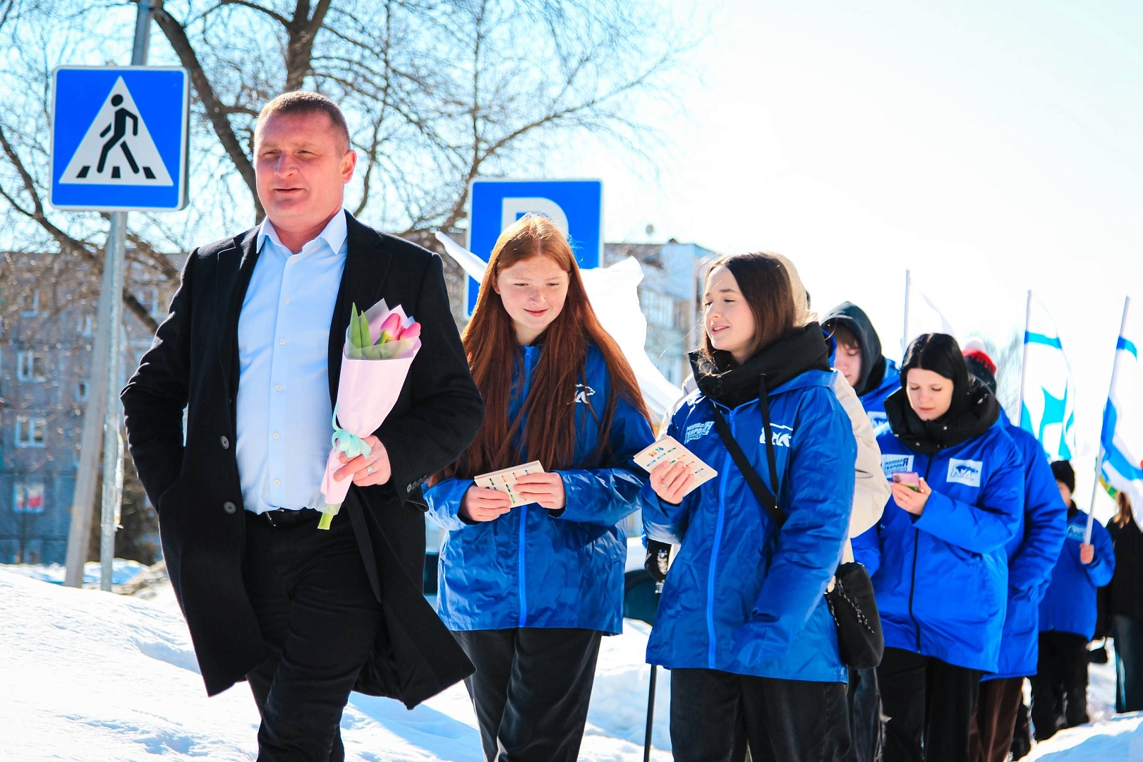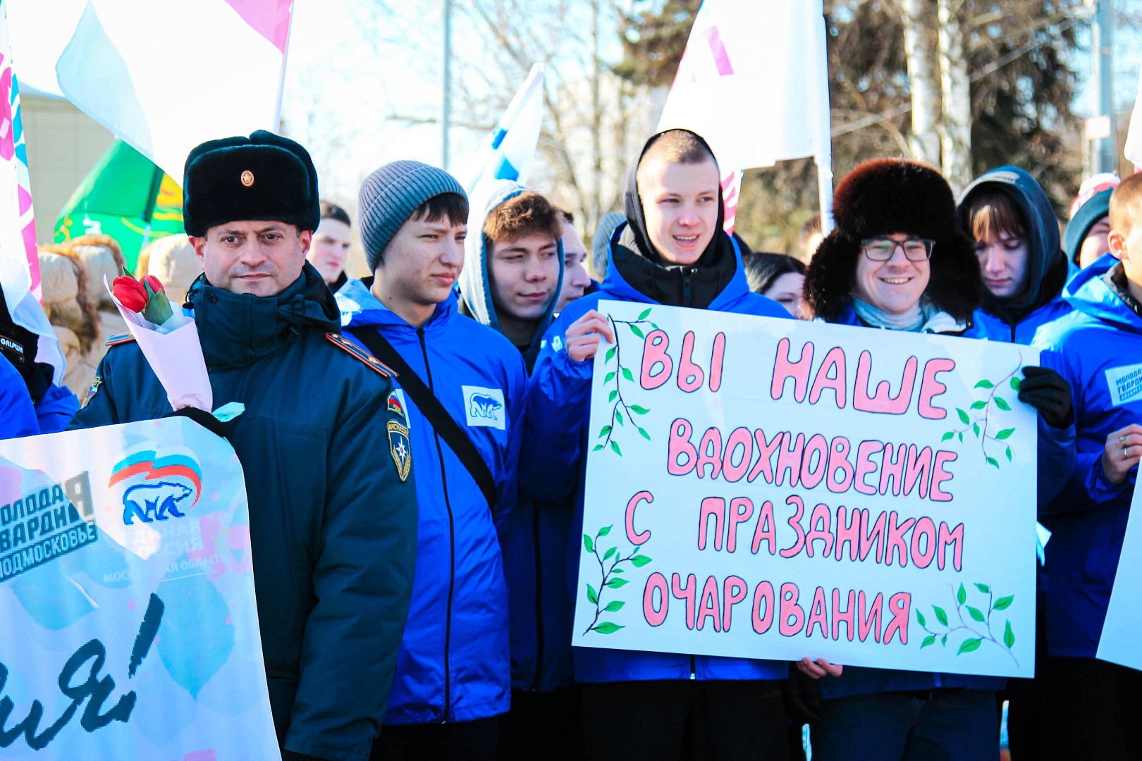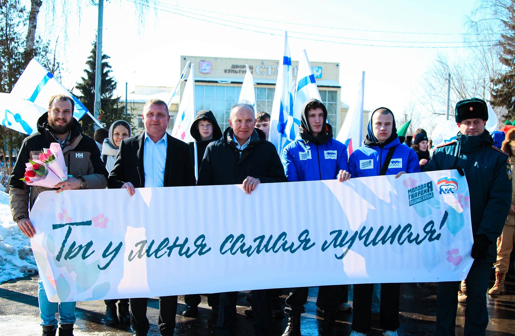 В канун 8 Марта молодогвардейцы Воскресенска вместе с активистами из соседних городов провели масштабное поздравительное шествие «Дорогая, ты права!».Колонна с поздравительными плакатами и цветами прошла по улицам Луховиц, создавая праздничную атмосферу и поднимая настроение всем жителям. Каждой встречной девушке и женщине мы вручали цветы и искренние поздравления с наступающим праздником, символизируя благодарность за их свет, красоту и силу.