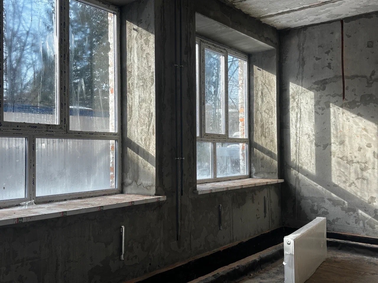 На данный момент на объекте работает 6 человек: устанавливают батареи, готовятся к утеплению фасада. Площадь объекта составляет 1,9 тыс. кв. м, а процент выполнения работ достиг 40%.