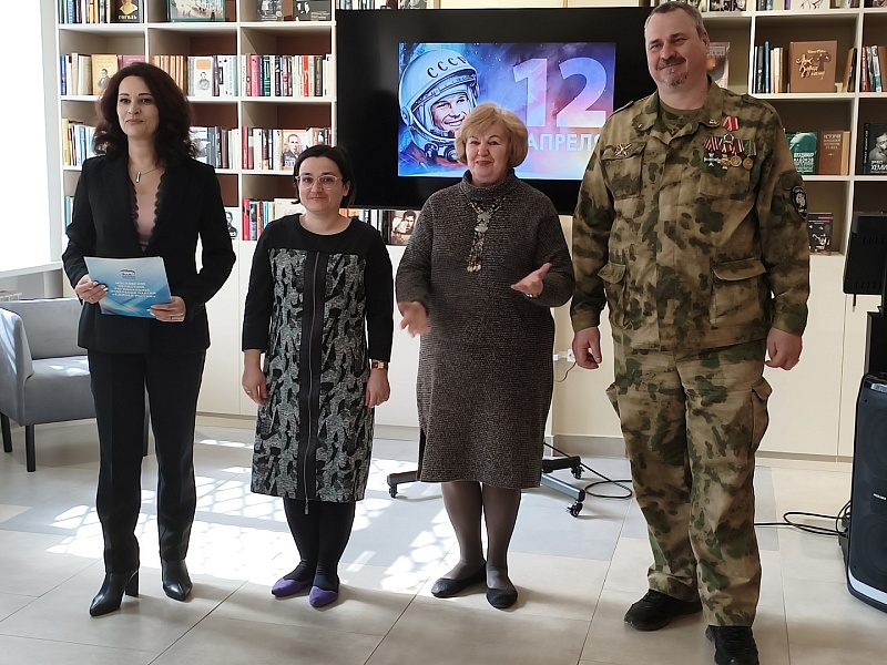 7 апреля в отделе обслуживания Центральной библиотеки им. Инны Гофф прошёл краеведческий час «Космос далёкий и близкий», посвященный 65 - летию полёта первого человека в космос.Гостями мероприятия были депутаты городского округа Воскресенск Жанна Мишина и руководитель Воскресенского отделения Ассоциации ветеранов СВО Олег Стегура.