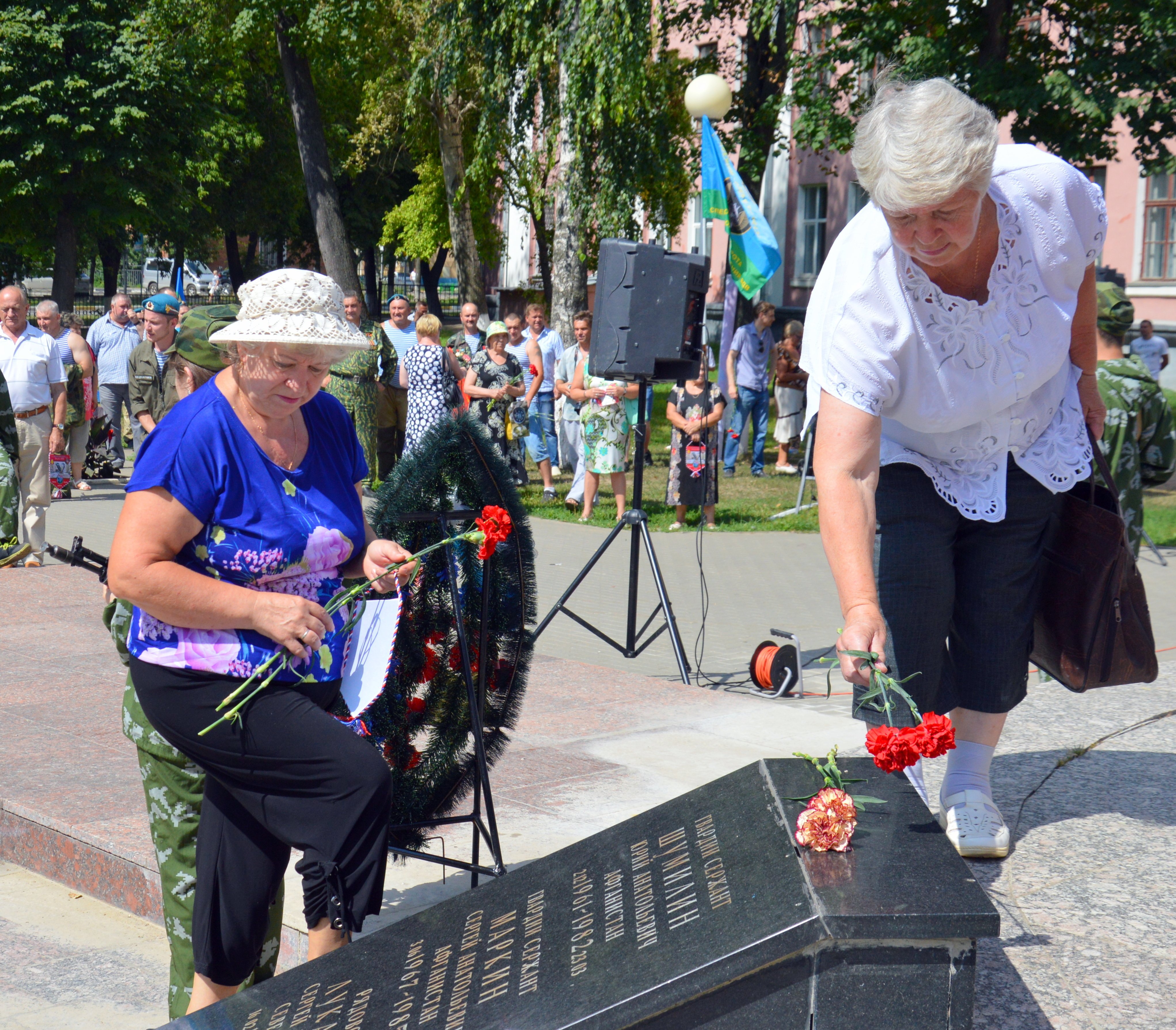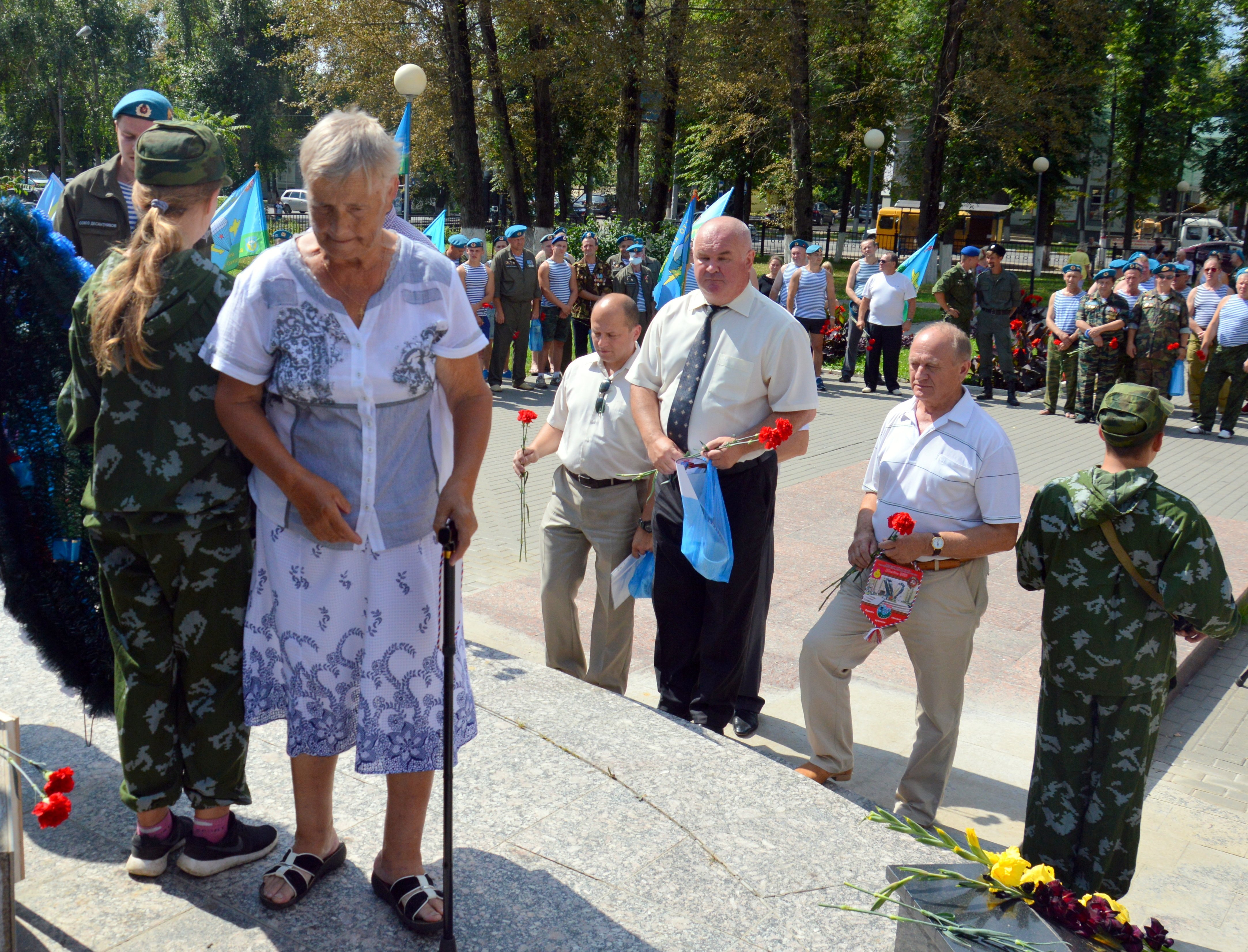 Торжественное мероприятие завершилось возложением цветов к памятнику павшим. Олег Сухарь, отметил, что особой любовью нашего народа, особым почетом и уважением в народе пользуются воздушно-десантные войска. «Это не случайно, потому что за свою 86-летнюю историю именно крылатая пехота участвовала во всех без исключения боевых операциях отечественных вооруженных сил. Бойцы ВДВ всегда проявляли мужество, профессионализм, готовность к самопожертвованию. Мы сегодня поздравляем не каких-то мифических героев, литературных или киноперсонажей. Мы чествуем живых людей, живущих в одном с нами времени – ветеранов и военнослужащих ВДВ. В этот день мы также чтим память павших, разделяя скорбь их близких. С праздником, десантники, с Днем ВДВ», – сказал Олег Сухарь.